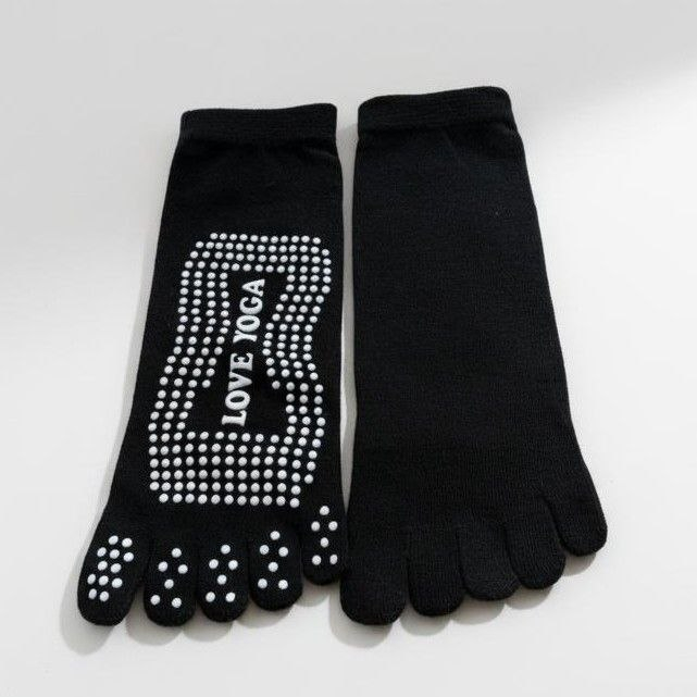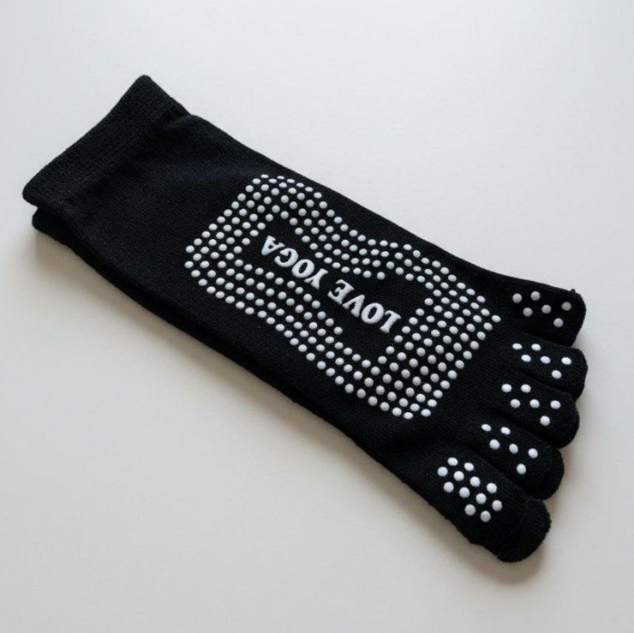 Șosete negre antiderapante, realizate din material elastic și confortabil, special concepute pentru practica yoga, pilates sau alte exerciții de sală.
